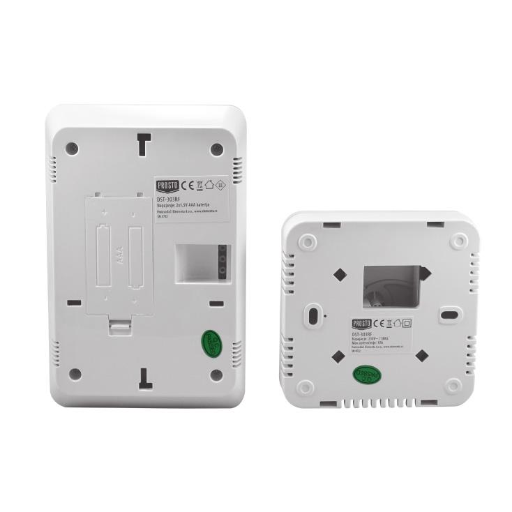 Dimenzije: 135x87.5x23.2 mm mm (termostat), 86x86x26 mm (prijemna jedinica)