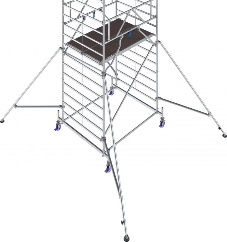 • Koriste se točkovi sa podešavanjem visine i kočnicama – skela je pogodna za rad i na neravnim terenima.