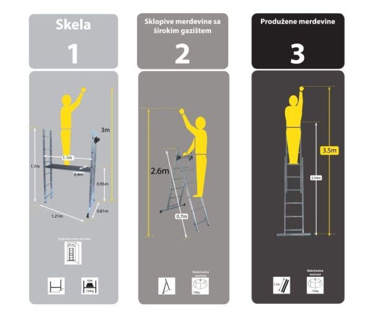 Multifunkcionalna Aluminijumska Skela Centaure 3 u 1 pruža višestruke mogućnosti primene.