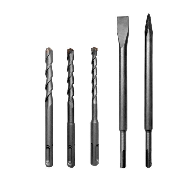 Pribor: 1 x SDS+ konusno dleto (14x250 mm), 1 x SDS+ pločasto dleto (14x250 mm), 3 x SDS+ burgije (8, 10, 12 x 150 mm), 1 x zaštitni poklopac od prašine, 1 x ključ, 1 x par grafitnih četkica