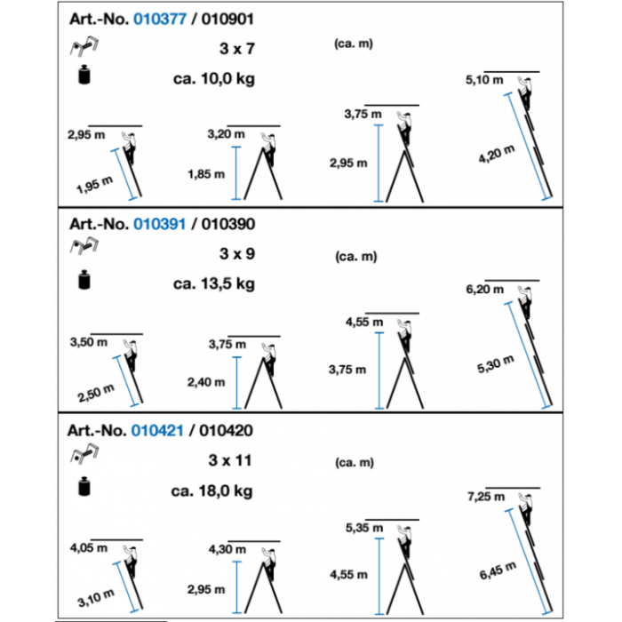 Radna visina kada su merdevine postavljene u slovo A 375cm