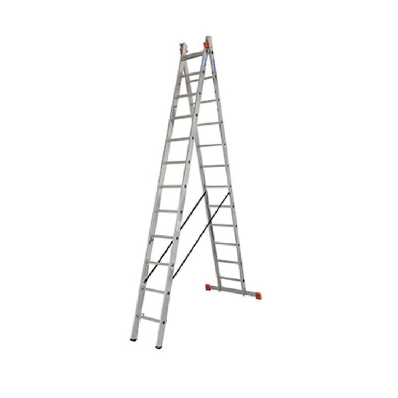 Dvodelne aluminijumske merdevine koje se mogu koristiti kao: prislone, samostojeće i merdevine na izvlačenje