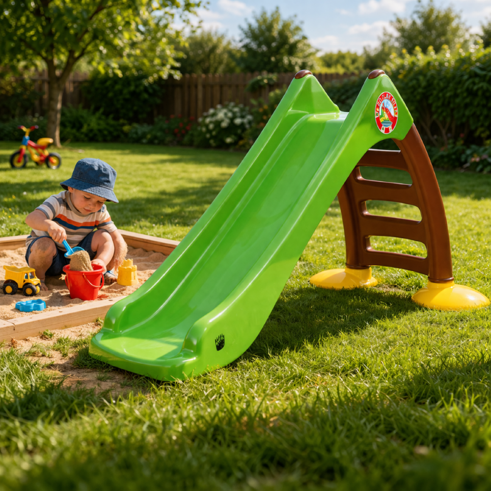 Tobogan izrađen od kvalitetne plastike otporne na različite vremenske uslove.
