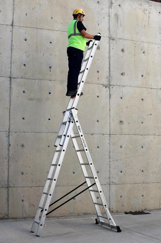 Trodelne aluminijumske merdevine 3x13 Centaure mogu da se koriste kao naslanjajuće, samostojeće i kao merdevine na izvlačenje.