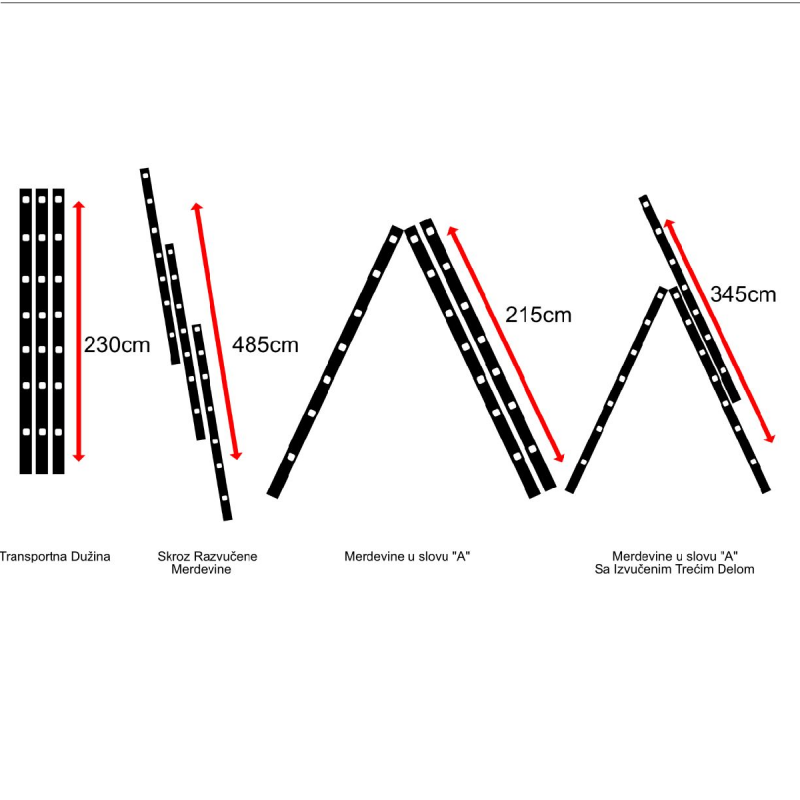 Visina maksimalno razvučenih merdevina 4,85 m